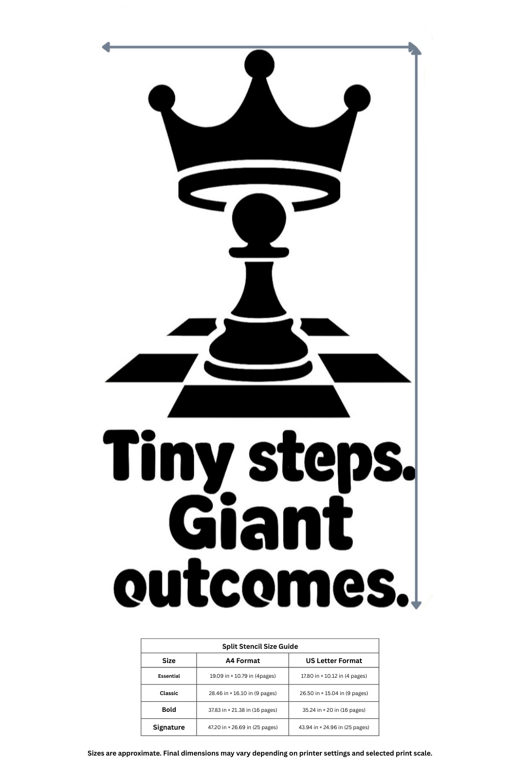 Add a powerful symbol of strategy, growth, and achievement to your walls with this Tiny Steps Giant Outcomes Chess Stencil.